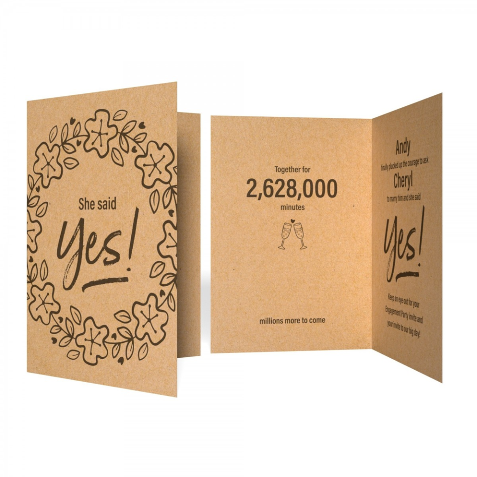 Make your announcements stand out with our Kraft Announcement Card Printing service. These cards are not just a means to share news but a statement of character and sustainability. Printed on 100% recycled card stock, our Kraft Announcement Cards are the go-to choice for those wishing to make an impact with an eco-friendly twist.