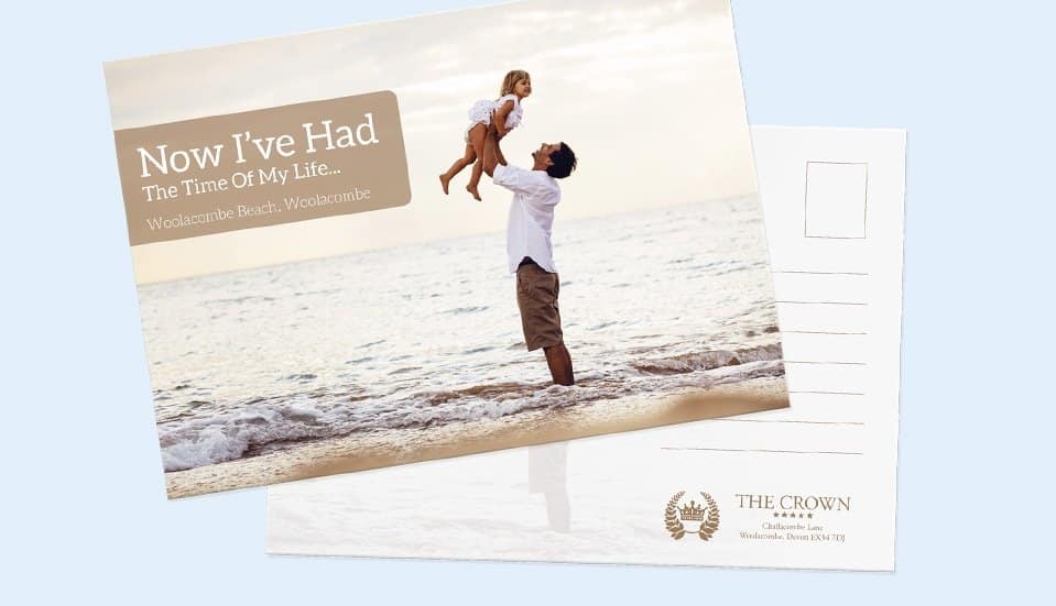 Our postcard flyers are printed onto sturdy 310gsm board which is semi-glossy to the front and matt to the rear… just like the ones you find at the seaside! There’s plenty of room on the front of the postcard for your artwork. We can also print a design onto the reverse side, or leave it blank ready for your hand-written message.