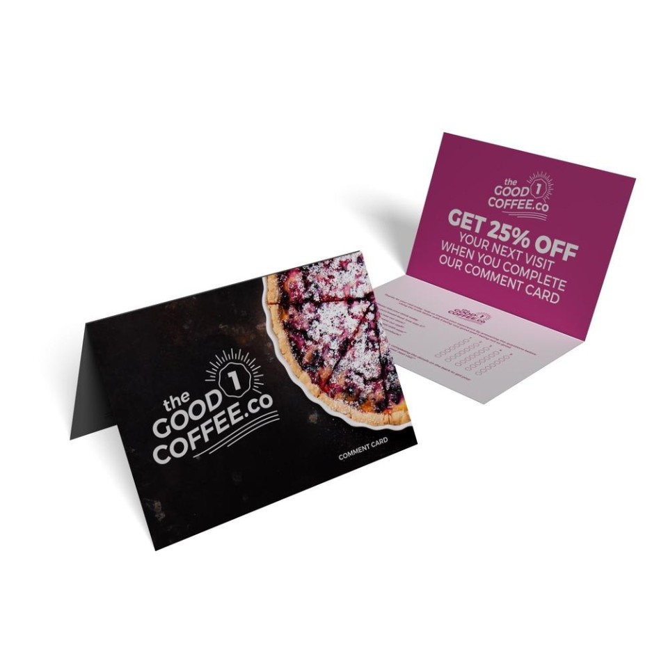 Get to know your customers better with our Folded Comment Cards. Designed to capture genuine feedback in style, these compact, eco-friendly cards help you understand what your customers really think — so you can keep improving, building loyalty, and strengthening your brand.