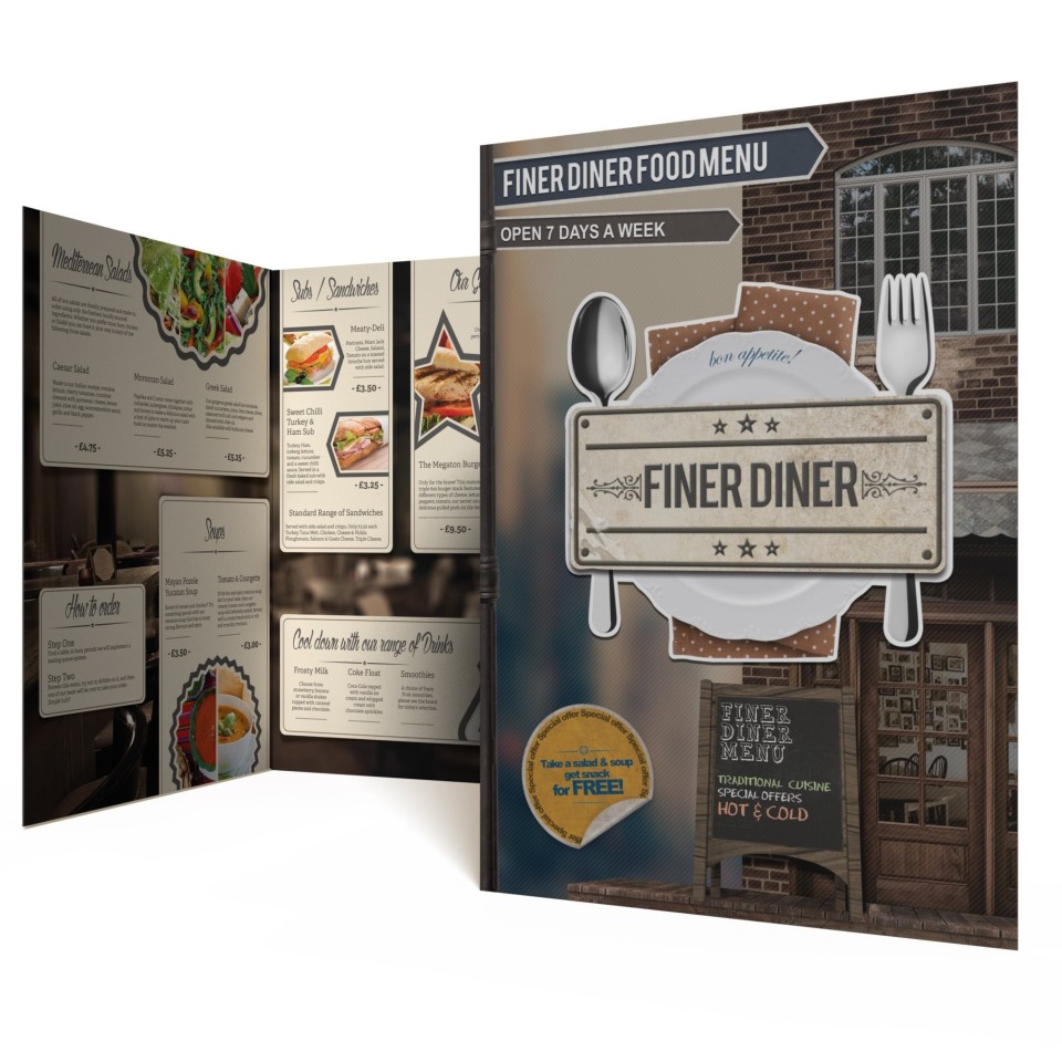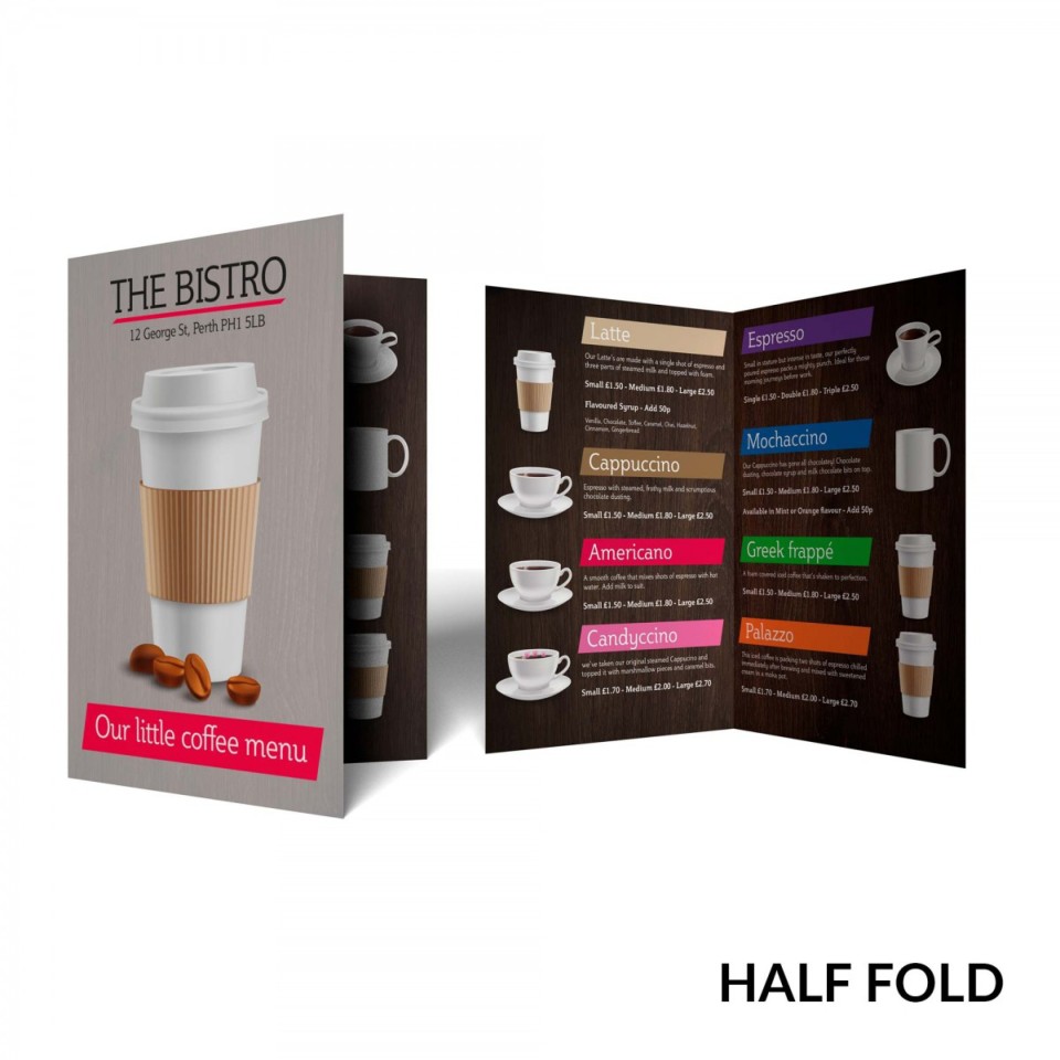 Many restaurants, bars, pubs, cafes and canteens are switching to laminated menus as they can be wiped down and sanitised with a damp cloth. Help prevent the spread of coronavirus and provide reassurance to your staff and customers. Available in a wide choice of different sizes and folds, our laminated folded menus are printed onto sturdy 250gsm or 350gsm silk paper and then coated with either a gloss or matt lamination film. The lamination helps to protect the menus from spills and handling, extending their life and keeping them fresh and vibrant week-in, week-out.