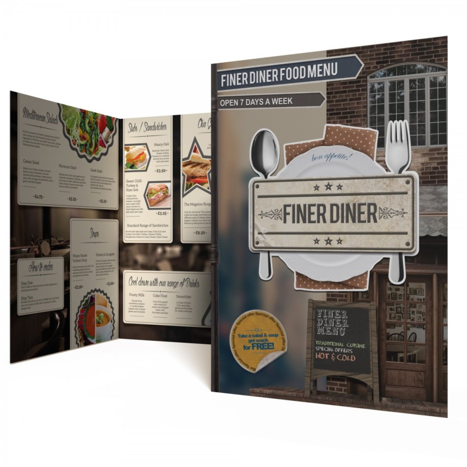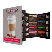 A menu says a lot about your establishment, so set your diners' tastebuds tingling and make a big impression with our custom printed folded table menus. Our extensive online range allows you to craft a menu that's as unique as your culinary creations, with thousands of different combinations of sizes, folds, finishes and formats. Whether you're buying for a works canteen or a fine dining restaurant, our folded table menu printing service delivers excellent value for money and a quick and easy shopping experience.