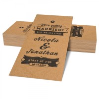 Printed with pride on 100% recycled brown kraft stock, these bespoke wedding invitations are the perfect way to announce your big day while also giving a helpful boost to the environment. Not only eco-friendly but also aesthetically pleasing, they're an ideal complement to retro or rustic themes, thanks to their pared back simplicity and chic styling. We will print your invites in high-resolution colour, to ensure that you get to announce your big day in style.