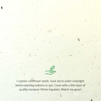 As our seed paper is made from recycled fibres and contains live wildflower seeds, every sheet is unique. It's a porous stock so we'd recommend you avoid large areas of solid colour and stick to a relatively simple, bold design with minimal ink coverage (no more than 40%) so that the seeds remain visible. Due to the cream colouring of the paper, colours will appear darker when printed. Note that printing onto this paper stock results in a slightly mottled effect, especially in areas where the paper contains larger seeds. We believe this adds to the natural appearance of the product but please take this into consideration when creating your artwork and avoid very small text and large areas of colour.