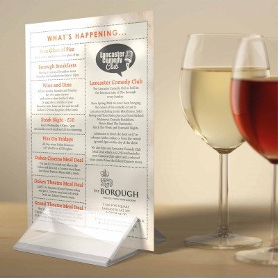 Choose from a range of quality papers, including recycled, uncoated or silk, depending on the style you're aiming for. Thicker stocks offer a more premium feel, while lighter options keep costs down if you refresh your menus often. Whatever you choose, your no-fold menus will arrive crisp, consistent and ready to use.