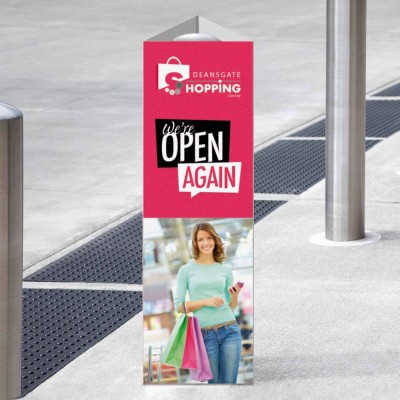 Our range includes banner stands, posters, Foamex signage, outdoor banners, outdoor PVC posters, Correx signs, A-frame signs, selfie frames, window stickers, aluminium signs, bollard covers, cardboard signs, magnetic signs, placards, car mirror hangers, door hangers, and floor stickers. If it helps your brand get noticed, we print it.