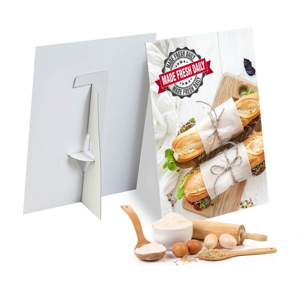 Go beyond the standard rectangle with strut cards tailored to your exact specifications. We can create bespoke designs in virtually any size or shape, ensuring they align with your branding and stand out in a crowded space. Whether it’s a compact counter display or an oversized promotional piece, we make sure your strut cards deliver maximum impact.